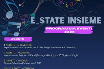 L’Amministrazione Comunale di Centola è lieta di presentare E_STATE INSIEME 2025, il programma degli eventi che animerà l’estate nel nostro territorio, tra cultura, spettacolo, musica e tradizioni...