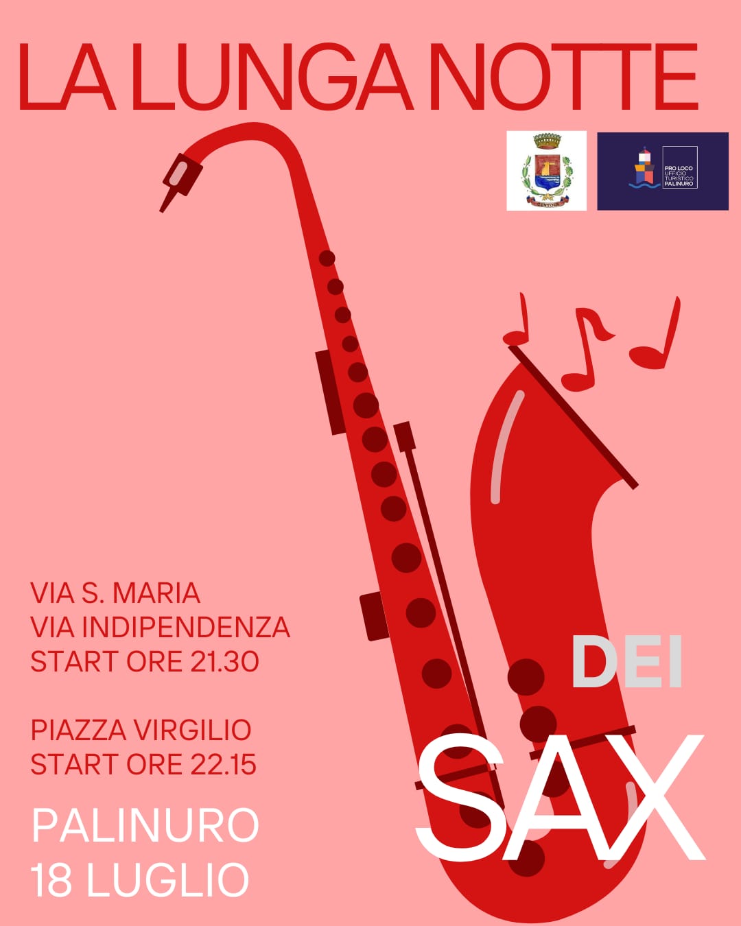Questa sera, venerdì 18 luglio vi aspettiamo a Palinuro per “La Lunga Notte dei Sax”, un evento che trasformerà le vie del centro in un palcoscenico a cielo aperto.