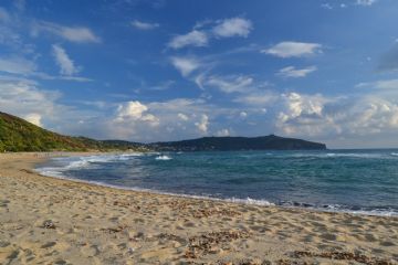 La spiaggia, con i suoi quasi 5 chilometri di lunghezza, è una delle spiagge più grandi del Cilento.