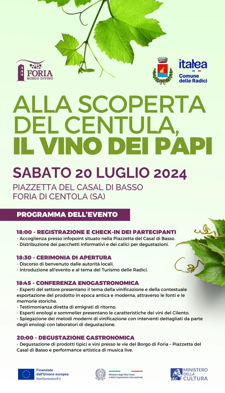 Sabato 20 Luglio 2024 presso Piazzetta del Casal di Basso a Foria di Centola (SA).