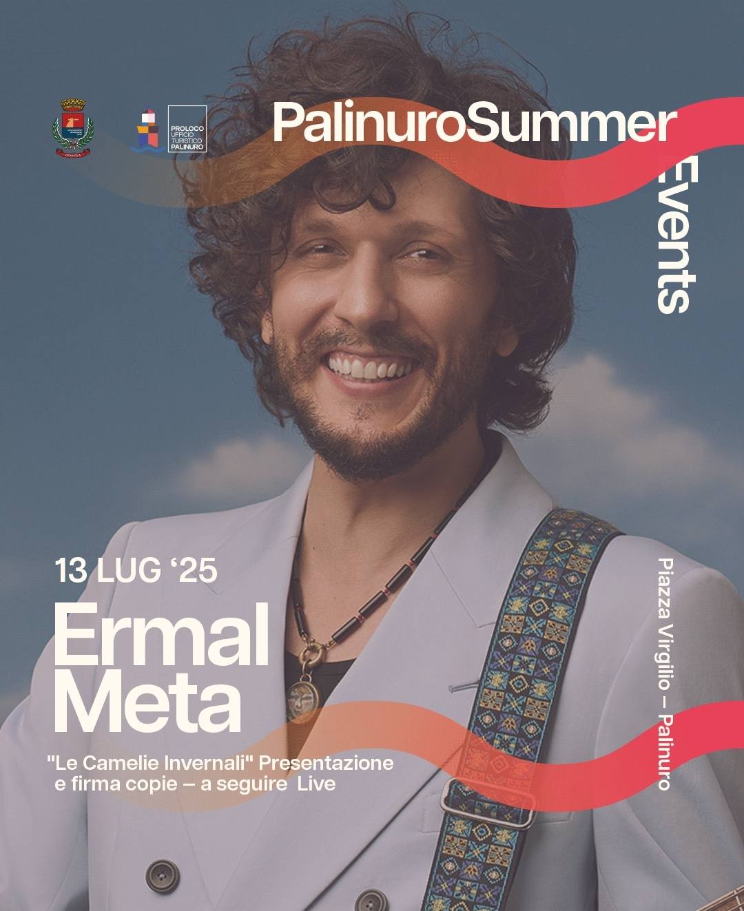 Il Comune di Centola in collaborazione con la Pro Loco Palinuro APS è orgoglioso di presentare uno degli appuntamenti più attesi dell’estate, una serata speciale che unisce musica, letteratura e passione: Ermal Meta sarà protagonista di un imperdibile appuntamento a Palinuro, nella suggestiva Piazza Virgilio.