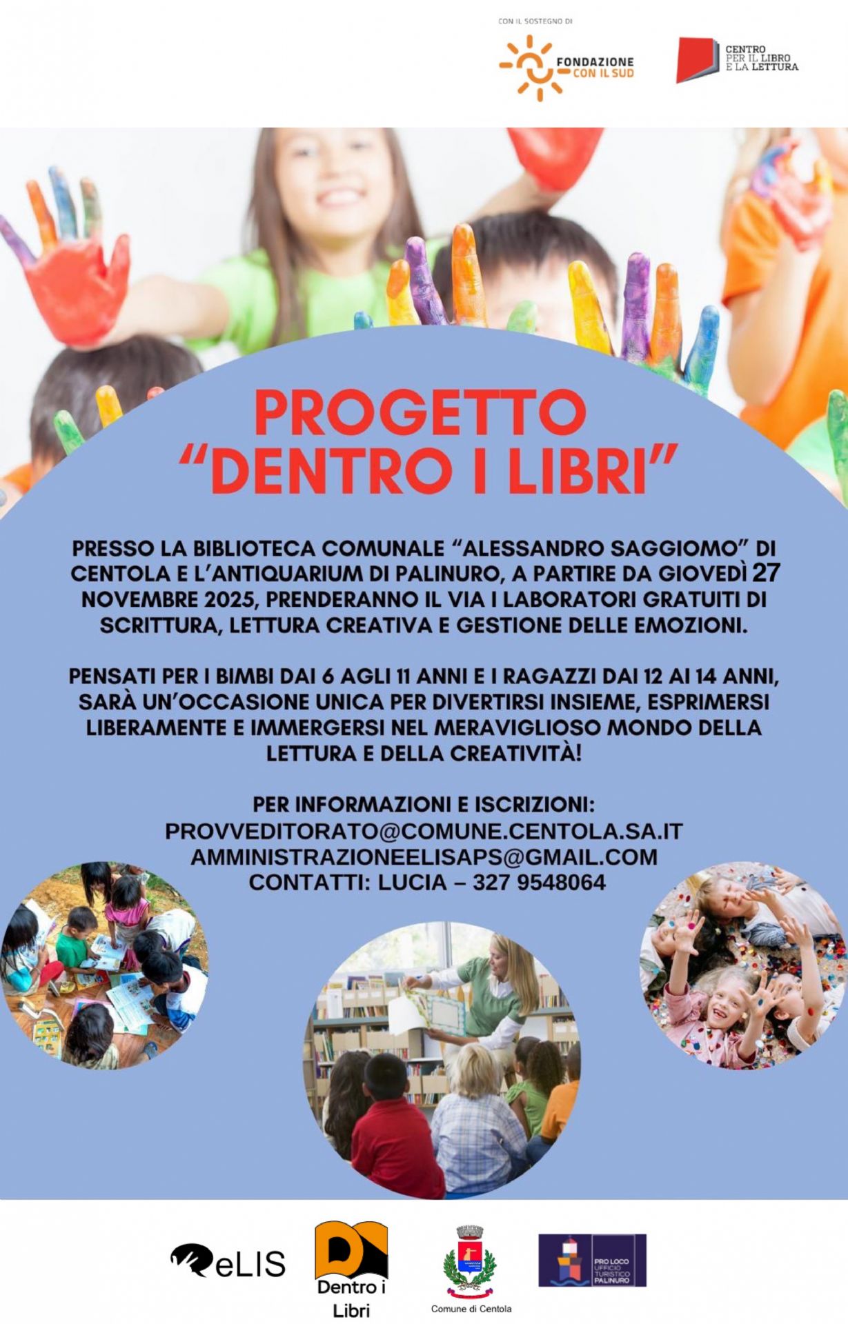 Presso la Biblioteca Comunale "Alessandro Saggiomo" di Centola e l'Antiquarium di Palinuro, a partire da Giovedi' 27 novembre 2025, prenderanno il via i laboratori gratuiti di scrittura , lettura creativa e gestione delle emozioni.